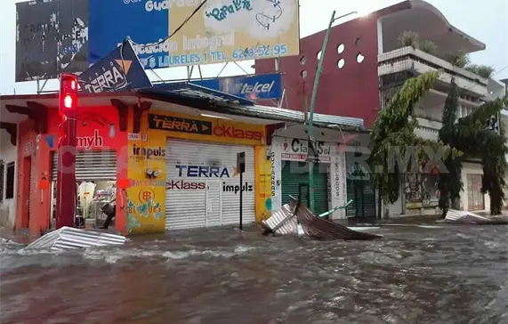 Una intensa lluvia acompañada de rachas de viento y tormenta eléctrica asoló la zona urbana y rural de Tapachula la tarde-noche de este miércoles. Se reportan daños en techos de viviendas en distintos puntos de la ciudad, caída de árboles y la suspensión del servicio de energía eléctrica en la zona sur-oriente de la ciudad.