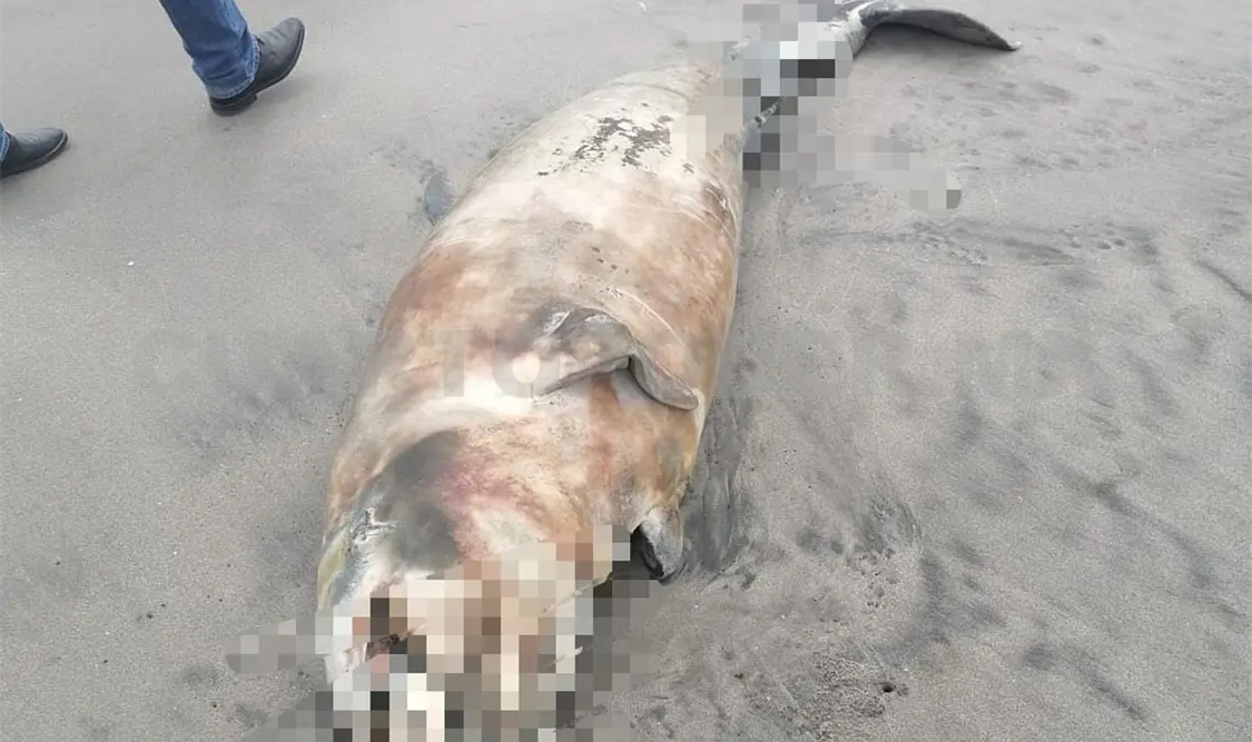 La Procuraduría Federal de Protección al Ambiente (Profepa) recopila información para poder determinar la causa de muerte de un delfín (Tursiops truncatus) hallado en las playas de San Benito en Tapachula.