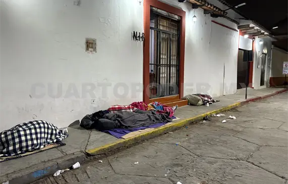 En contraste, en el Hospital de la Mujer, en el centro de la ciudad, acompañantes individuales duermen sobre la banqueta, cubriéndose con cobijas.