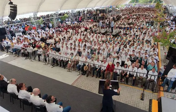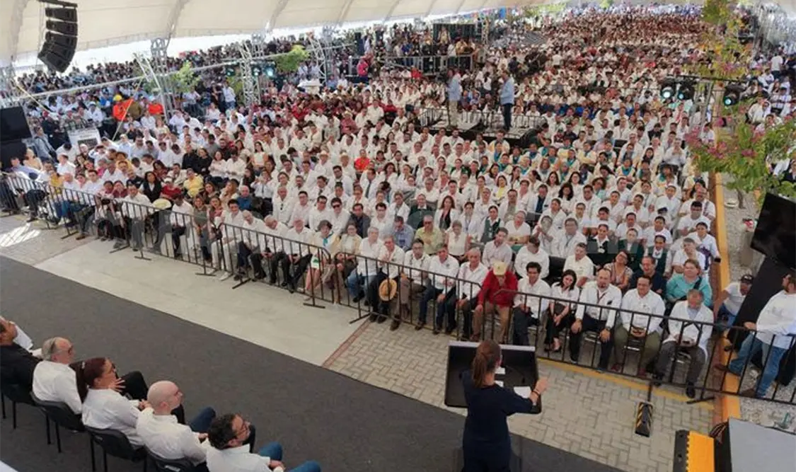 Desde Tuxtla Gutiérrez, Chiapas, la presidenta Claudia Sheinbaum Pardo convocó a las y los mexicanos a celebrar siete años de la Cuarta Transformación en el Zócalo de la Ciudad de México, tras inaugurar el Hospital General de Especialidades No. 13 “14 de septiembre” del Instituto Mexicano del Seguro Social (IMSS).