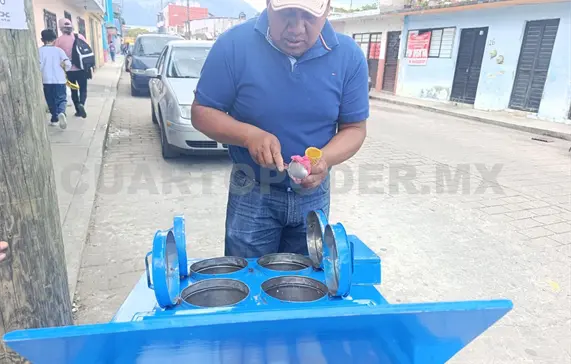 Explicó que “con eso y el hielo que compramos en la hielería Ballinas que está en la esquina de Ejército Nacional y Diego Dugelay, aunque últimamente fabricamos un poco para que sea más económico”. Hay de 10, 15 y 20 pesos. La de 10 es la que más vende.