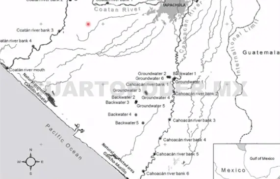 El investigador Jaime Rendón Von Osten dijo que en México existen algunos estudios sobre el glifosato; como en Chiapas, donde se hicieron estudios de glifosato en el río Coatán, localizado en una cuenca transfronteriza entre el departamento de San Marcos, Guatemala, y Tapachula, Chiapas.