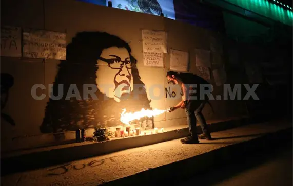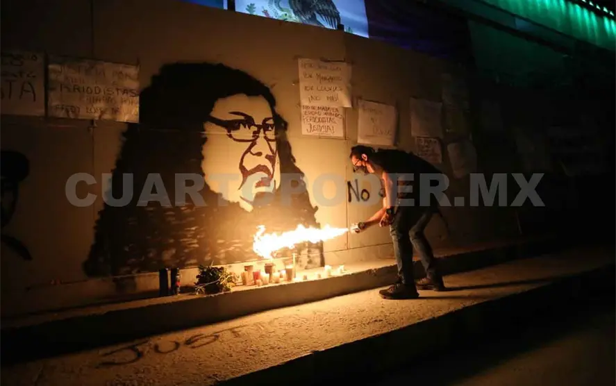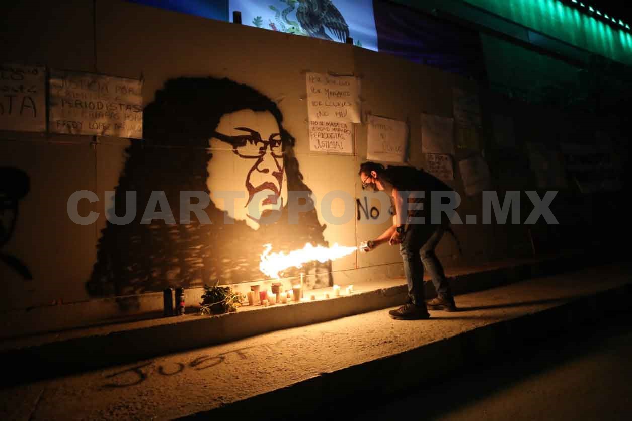 Además se colocaron veladoras y equipos de fotografía en un altar como símbolo de la exigencia de justicia para los comunicadores asesinados.