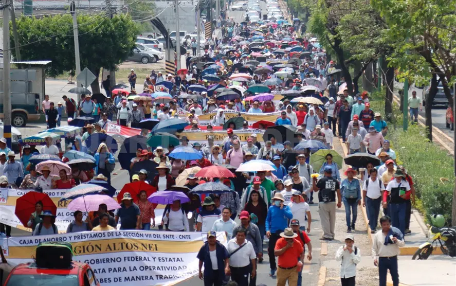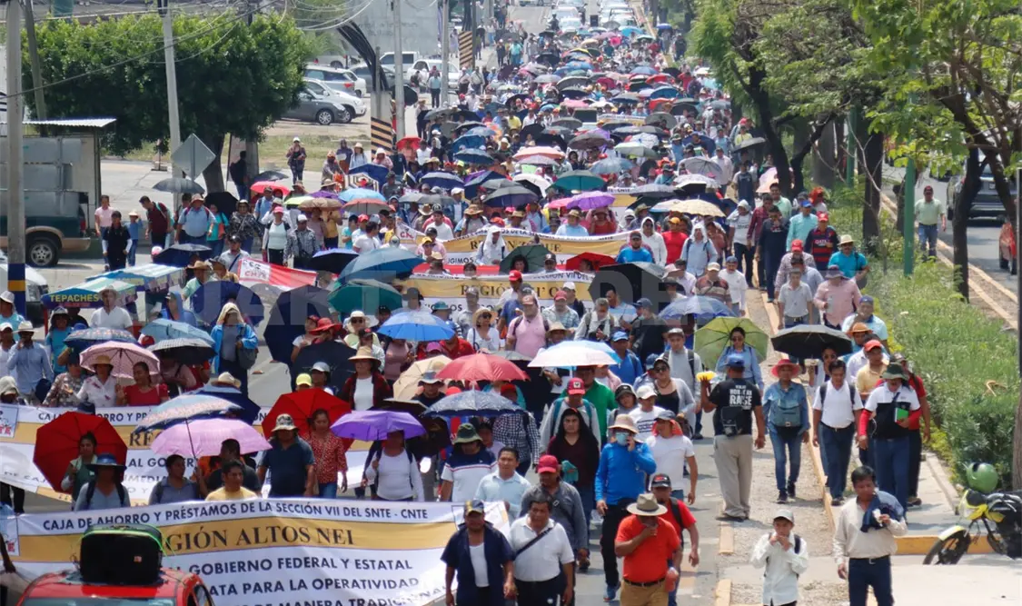 Con una marcha con varios miles de participantes, maestros y maestras de las diferentes regiones Chiapas se manifestaron en las principales calles y avenidas de la ciudad capital.