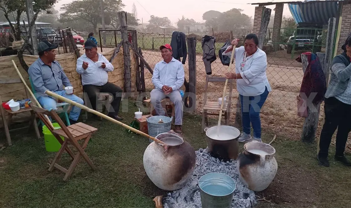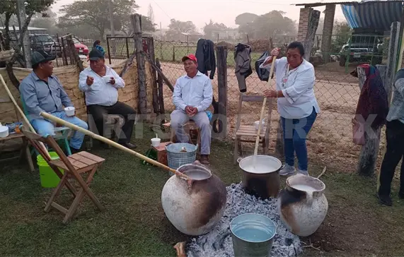 El ‘secreto’ está en el meneo, que debe de hacerse en una sola dirección y constante, de lo contrario ‘se corta’. Por eso, para la elaboración de una olla participan al menos cinco a seis personas: mientras uno menea, otro aviva el fuego, otro agrega agua hervida, azúcar y otros más relevan en el meneo. Lo cual vuelve está elaboración en una feria que reúne a más de 200 personas, entre mujeres y hombres de diferentes edades, así como menores de edad que van aprendiendo la elaboración. Hay música y mucha alegría.
