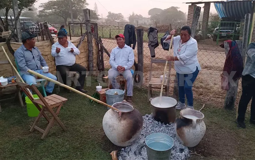 Varias ollas se reservan para repartir en una fiesta que realizan por la noche, en donde llegan visitantes de otras comunidades y de otras partes del estado que conocen esta tradición. Las festividades concluyen el 23 de mayo.