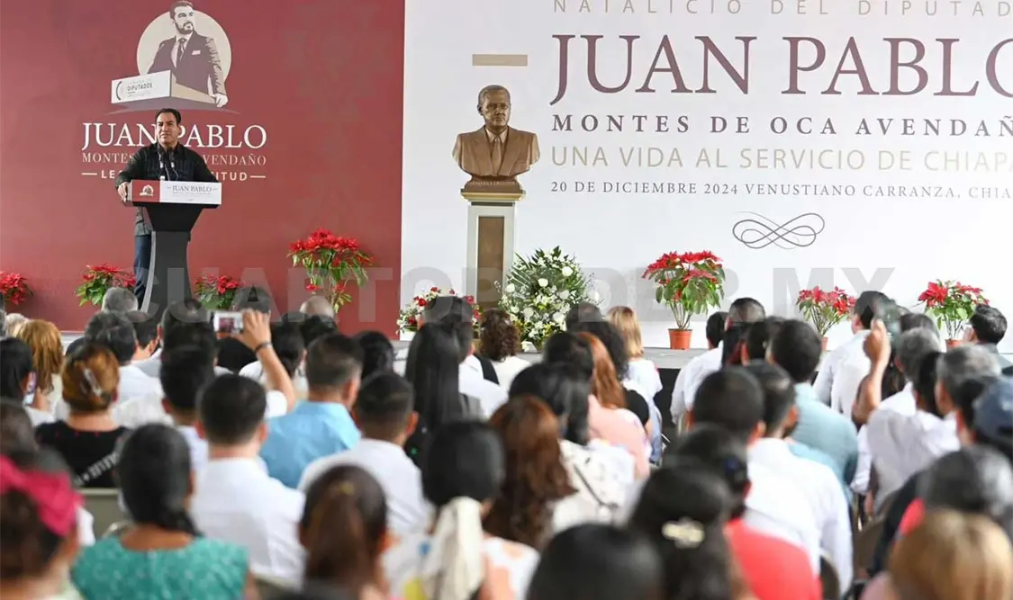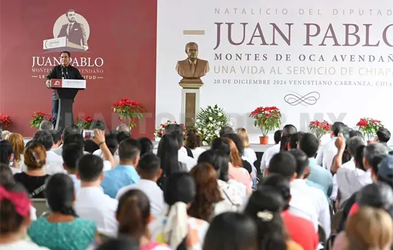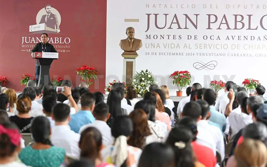 El gobernador Eduardo Ramírez Aguilar asistió como invitado a los homenajes realizados en memoria del diputado Juan Pablo Montes de Oca Avendaño, en Venustiano Carranza, donde aseguró que no le va a fallar a Chiapas ni a este municipio, para enaltecer el legado de quien fue su amigo y hermano, que sin su apoyo y consejos incondicionales, el proyecto de gobierno que hoy encabeza no hubiera sido posible.