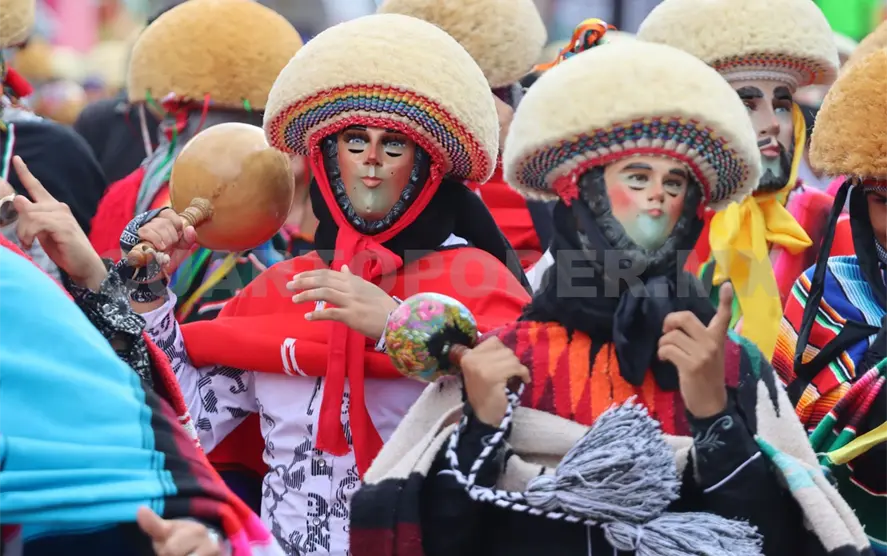 Resulta imposible caminar por las rutas donde avanza la comitiva. El sonido del carrizo marca los cambios en la danza, los chinchines suenan con una fuerza que estremece, y la música envuelve todo a su paso.