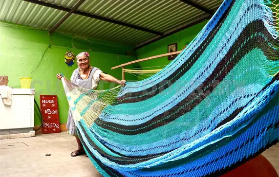 Comenta que actualmente el kilo de hilo cuesta entre 30 y 50 pesos, dependiendo la calidad, y el precio de las hamacas varia según el tamaño ya que hay infantil, individual, doble, familiar y king size que soportan de 100 kg hasta los 500 kg y oscilan de 300 hasta los tres mil pesos.