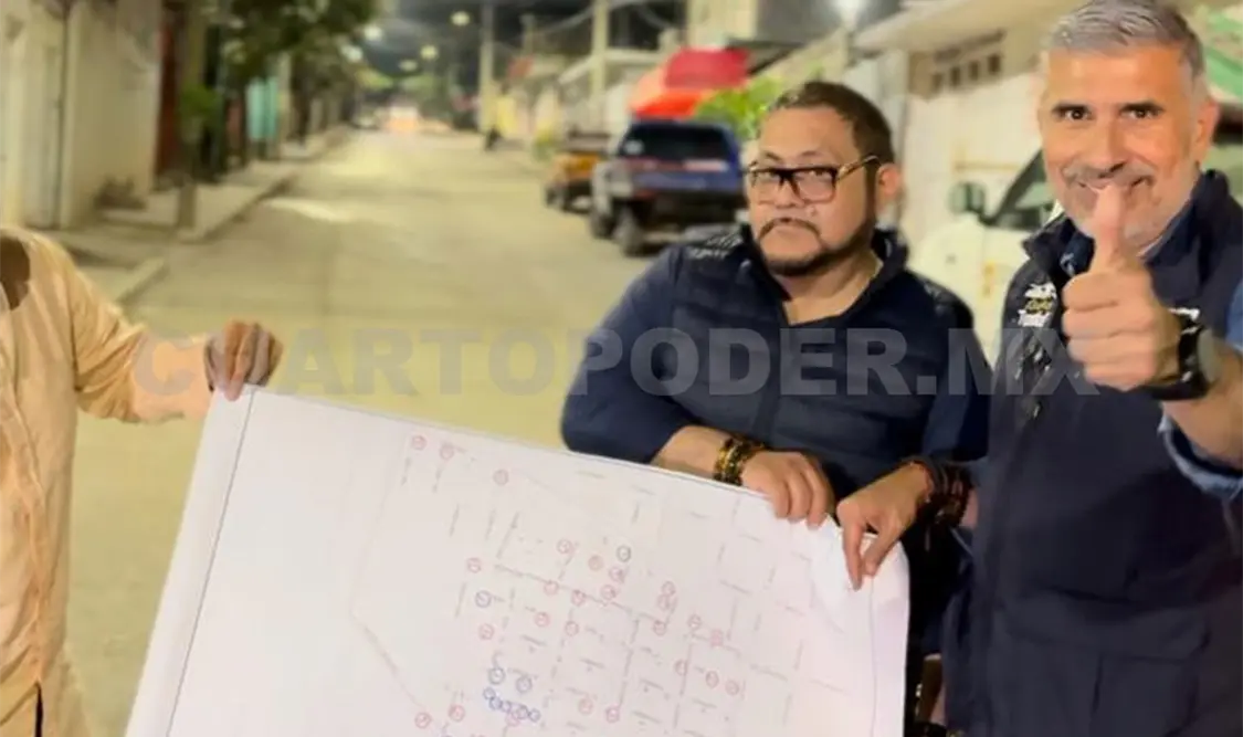 El presidente municipal de Tuxtla Gutiérrez, Ángel Torres Culebro, encabezó trabajos de alumbrado público en la colonia Democrática, en atención a la petición de las y los vecinos, así como en cumplimiento a uno de los objetivos del Plan Tuxtla 4T de generar entornos seguros y mejorar la imagen urbana.