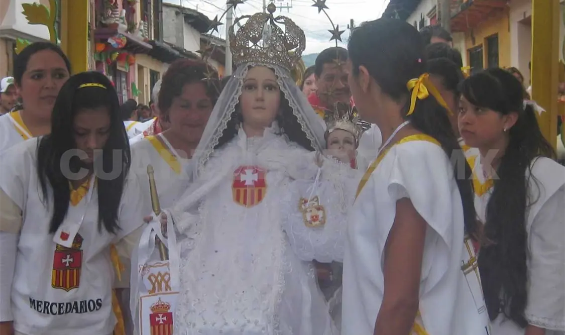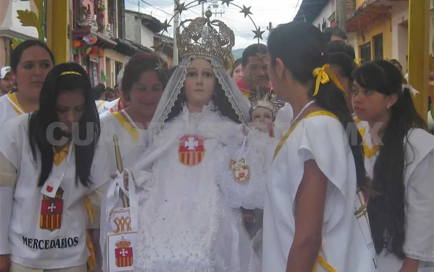 También participan los llamados “panzudos”, que son sucesores de los famosos moros. El anunció de la Merced era con el paseo de la virgen a cuestas, con una comitiva de aztecas, moros y católicos.