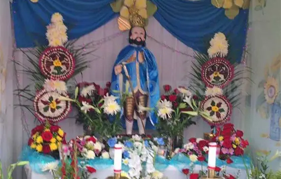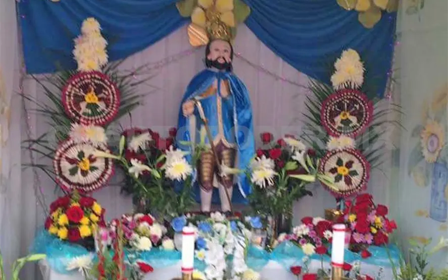 En dicha celebración están presentes la flor de ensarta, llamada también flor de mayo, la cual adorna la imagen que recorre el pueblo, al final los arreglos se ofrecen a la imagen del santo, que data de muchos siglos atrás.