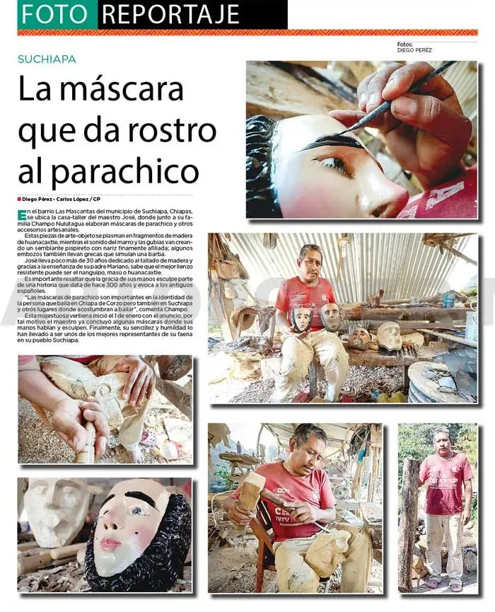 “Las máscaras de parachico son importantes en la identidad de la persona que baila en Chiapa de Corzo pero también en Suchiapa y otros lugares donde acostumbran a bailar”, comenta Champo.