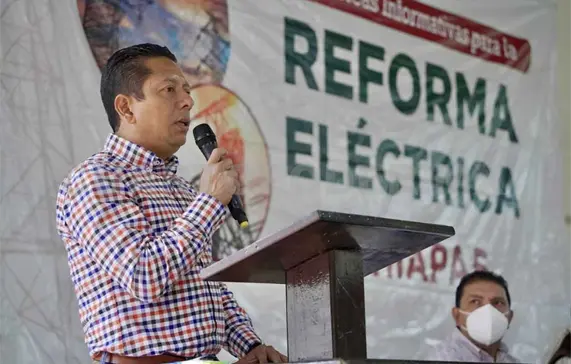 “El gobernador Rutilio Escandón Cadenas expuso en la Ciudad de México que en Chiapas sí apoyamos la reforma eléctrica propuesta por el presidente Andrés Manuel López Obrador porque está pensada para beneficiar a los que menos tienen, porque apoya las energías limpias y sí acepta la inversión de particulares”, declaró.