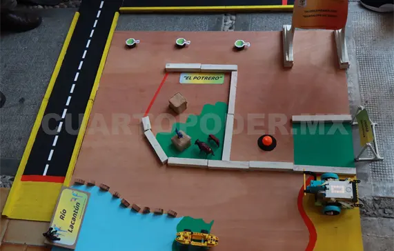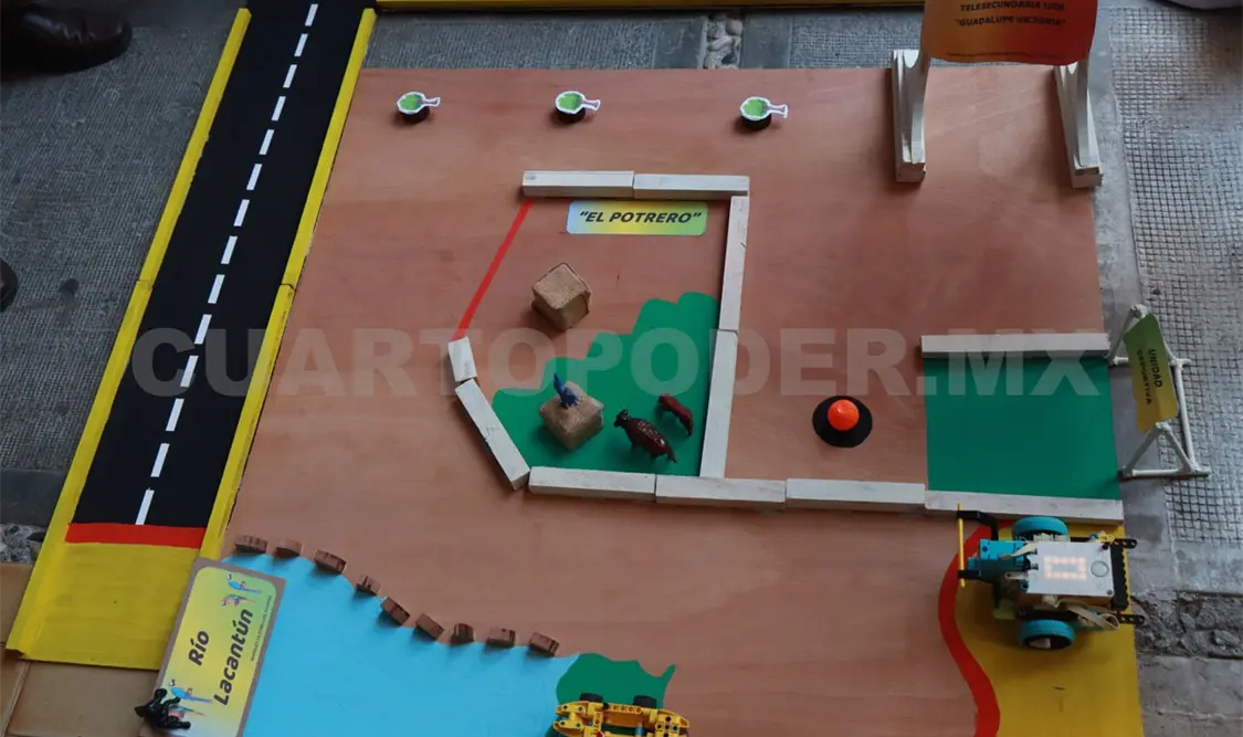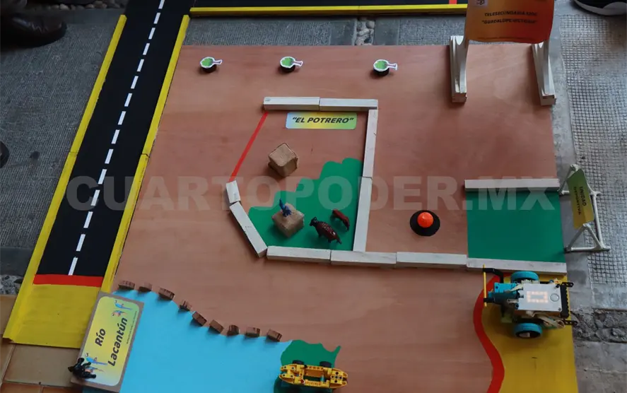 Los docentes presentaron un proyecto que llevan a las escuelas y exposiciones sobre resolver misiones. Es una misión adaptada al contexto, retomando las áreas del plantel a escala, el río Lacantún y mostrando una de las principales actividades económicas de la región, que es la ganadería.