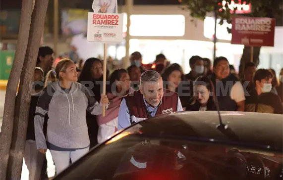 En este marco, en un ambiente de alegría, porras y música, el consejo guinda hizo entrega de material informativo a automovilistas y peatones, acerca de la importancia de que Eduardo Ramírez encabece el segundo piso de la Cuarta Transformación.