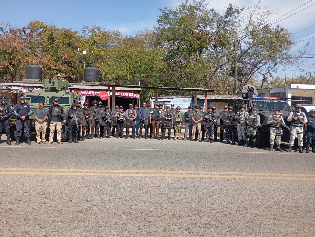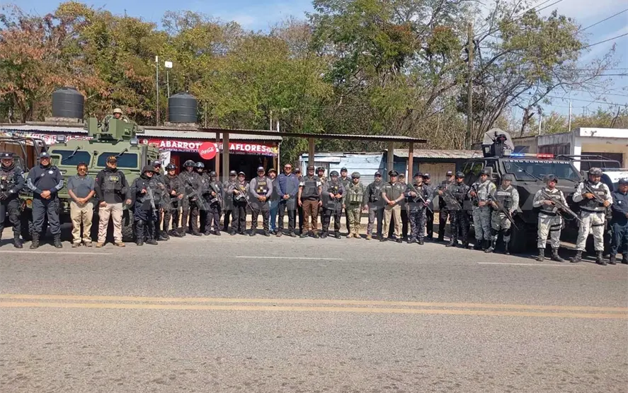 Esta fuerza de tarea conjunta movilizó a más de 50 elementos operativos, respaldados por un convoy de 12 unidades oficiales, incluyendo vehículos con blindaje táctico, para garantizar la cobertura de seguridad en el perímetro establecido.