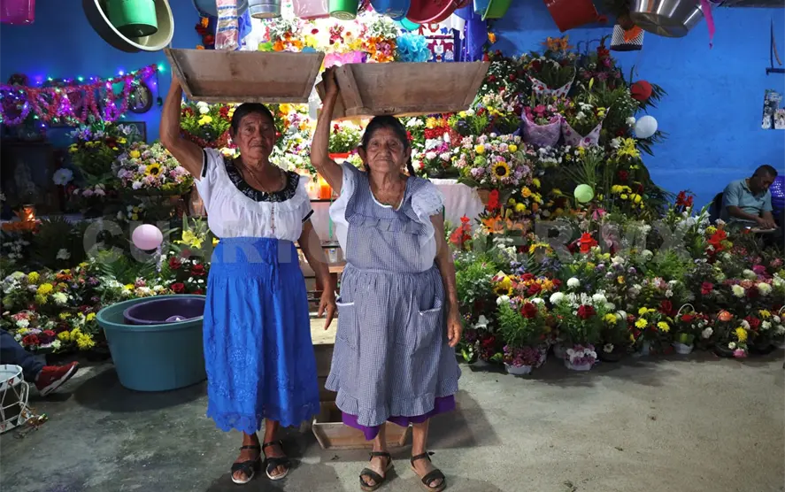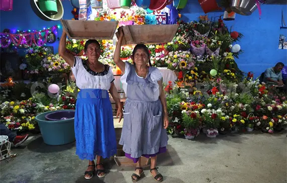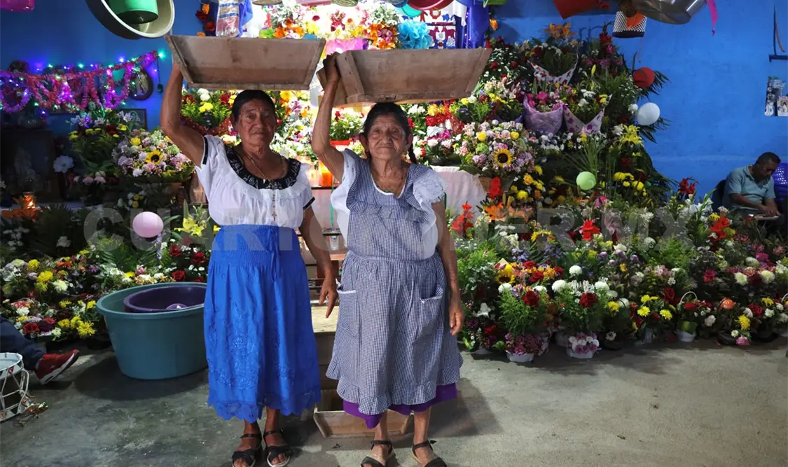 Las dos se ponen de pie, colocan sus bateas de madera sobre de ellas y piden ser retratadas “para que nos recuerden por si ya no estamos el otro año”, comenta doña Candelaria mientras las dos sueltan una risa.