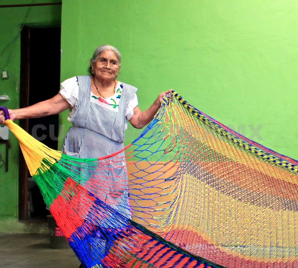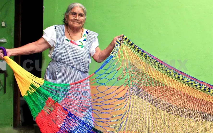 Doña Aurora Morales es una de las tejedoras más antiguas y respetadas de Berriozábal, Chiapas, que ha dedicado 71 años de su vida a la elaboración de hamacas con hilo de algodón e hilaza. La artesana heredó este oficio a los 10 años de edad y hoy, a sus 81 años sigue creando y tejiendo hamacas de diferentes tamaños, colores y diseños únicos.