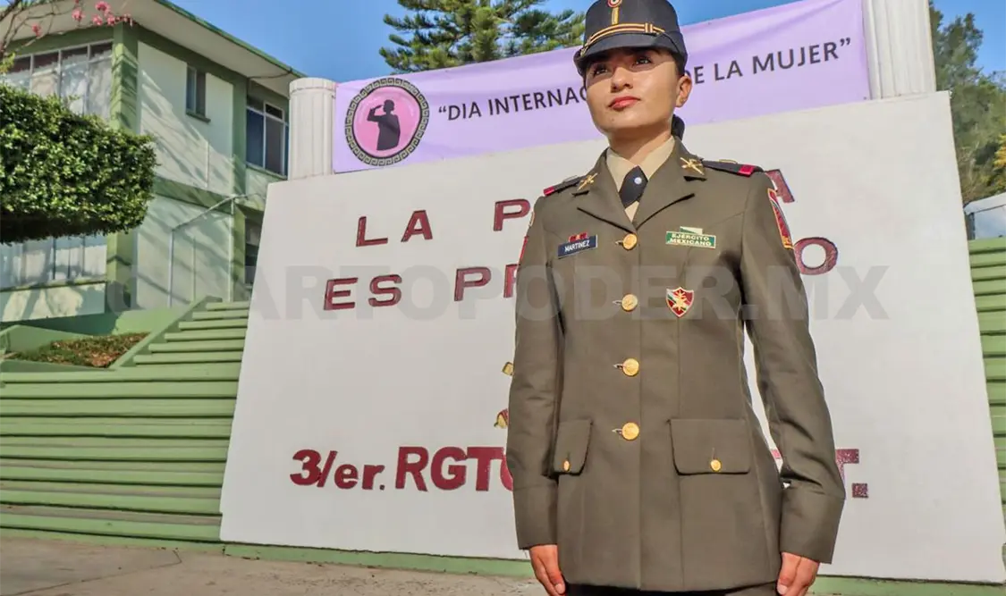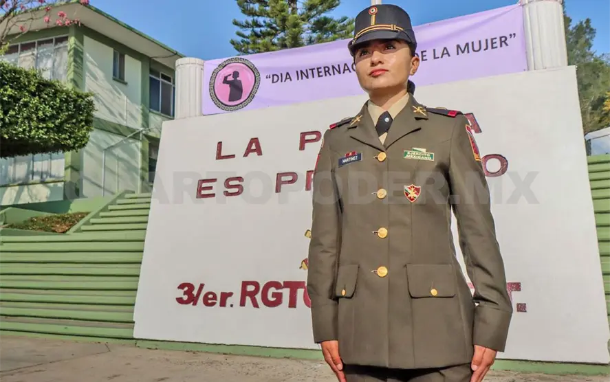 Francesca Ivette Martínez Vásquez pertenece al Tercer Regimiento de Artillería; lleva cinco años en las Fuerzas Armadas; para ella es un honor y orgullo formar parte de una institución que por más de un siglo ha contribuido al progreso de México.