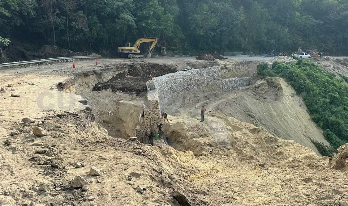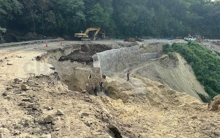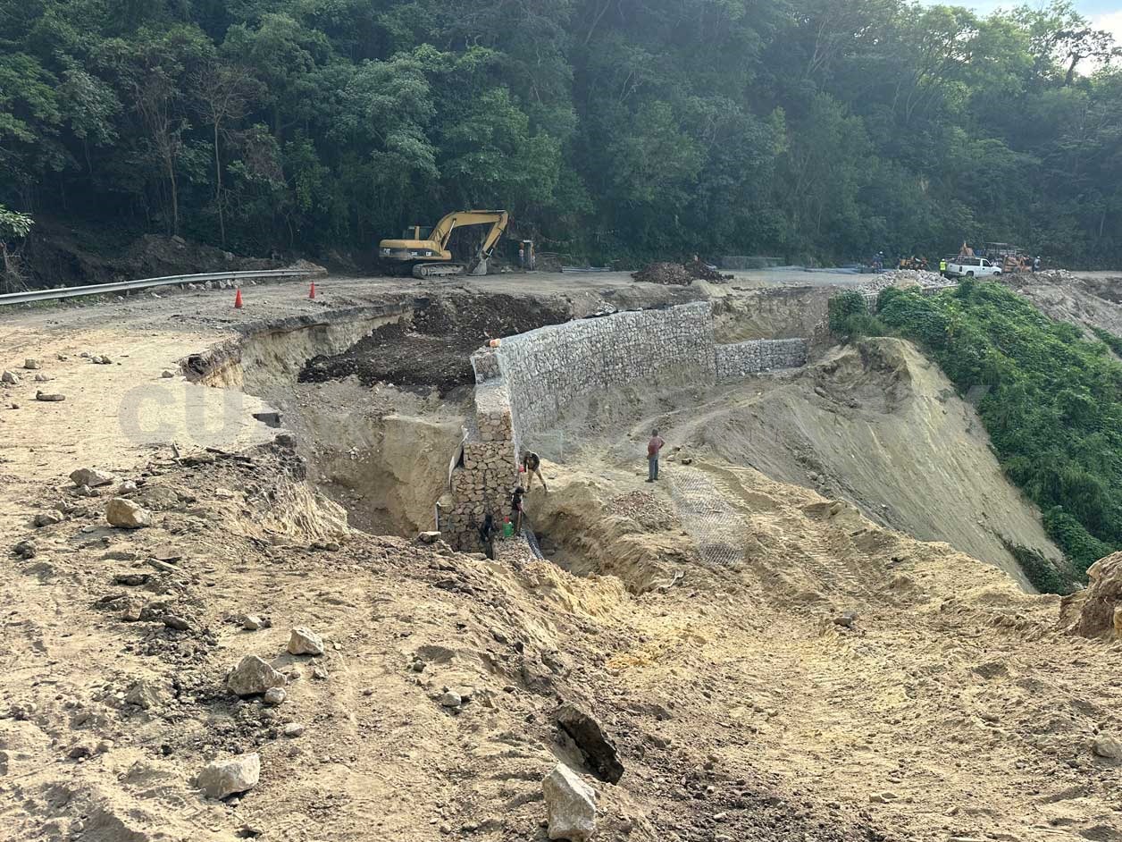 Los responsables de la obra de ingeniería expusieron que realizan la colocación de cuatro muros tipo gabión, con una distancia de ocho metros entre sí para reforzar la zona. Igualmente trabajan en un cuarto muro para darle firmeza al siguiente tramo con daños.