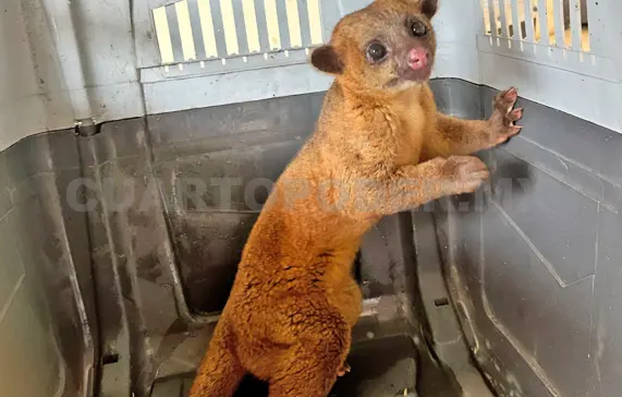 Una martucha (Potos flavus), también conocida como “mico de noche”, fue valorada y liberada en un Área Natural Protegida (ANP) de Chiapas, luego de ser rescatada en el primer cuadro de Berriozábal, a tan solo media cuadra del parque central.