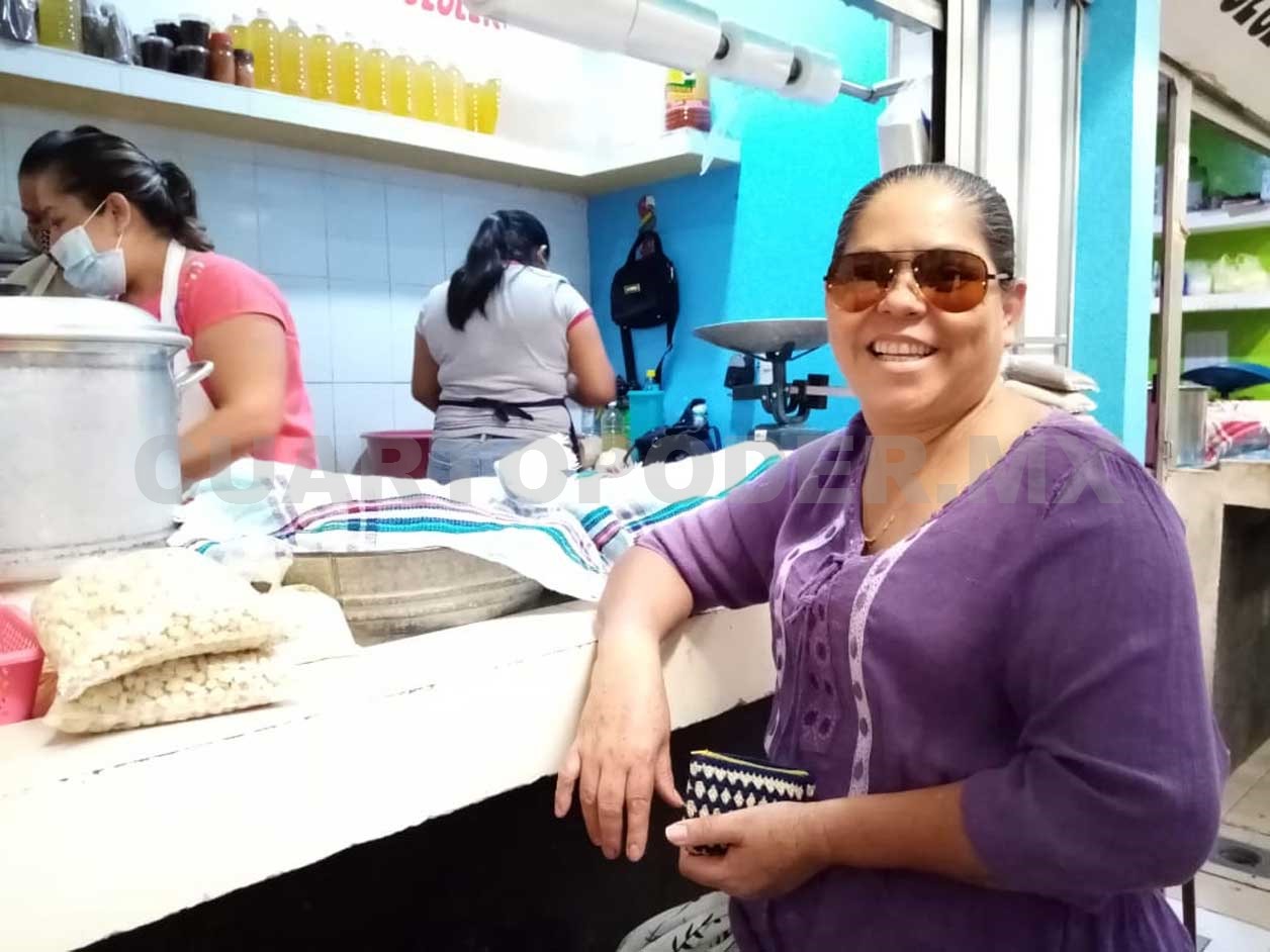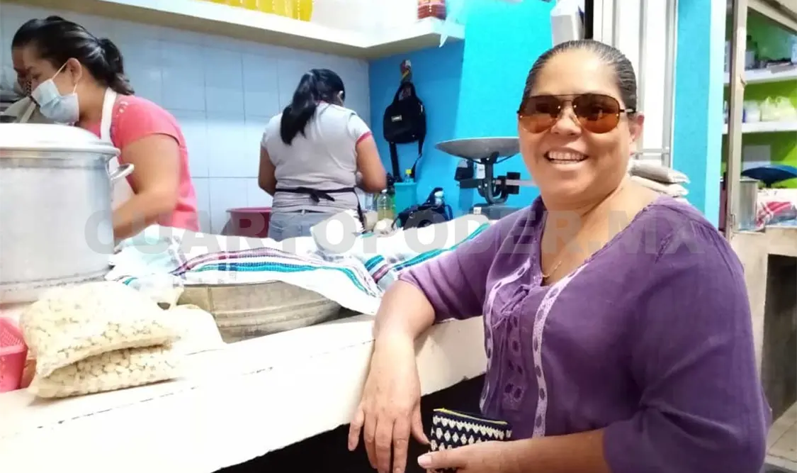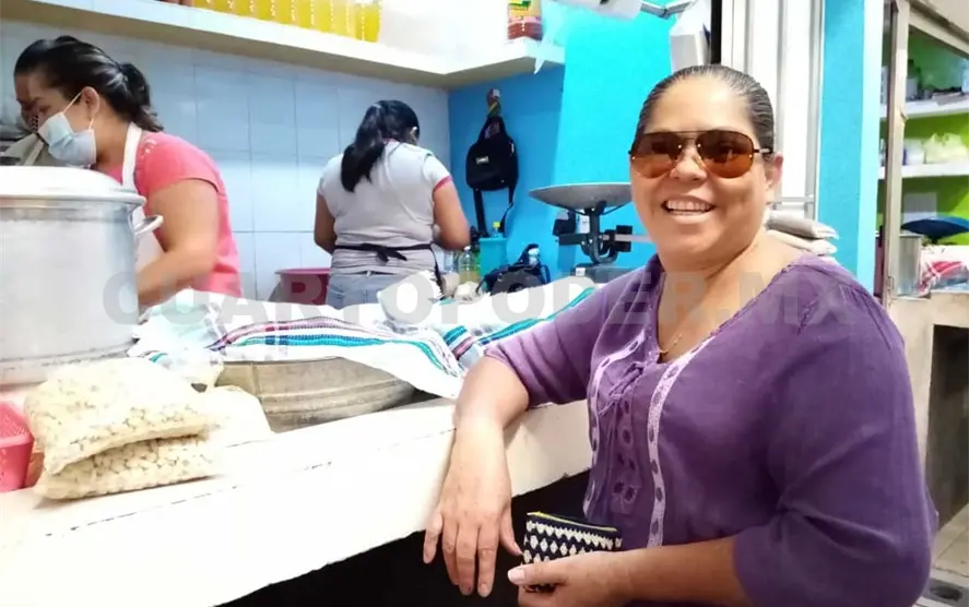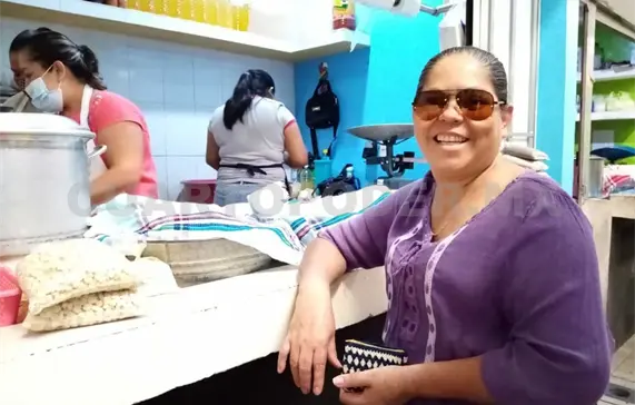 Yolanda López, que atiende el local de venta de pozol, masa y productos relacionados con este, cuenta que se ha hecho cargo del negocio desde que su madre falleció y se ha dedicado a compartir sus conocimientos a sus dos hijas.