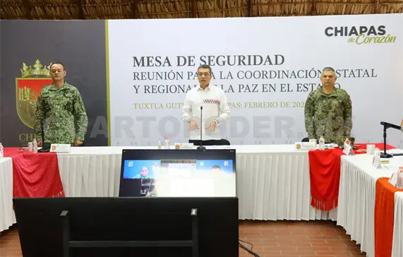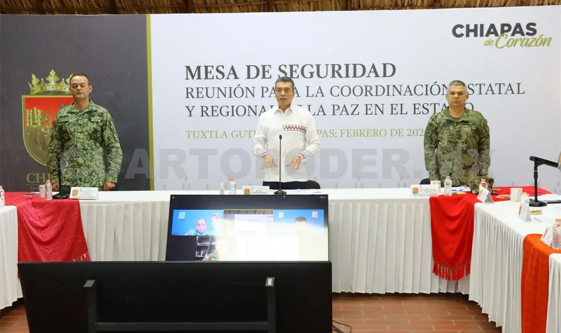 Durante la Mesa de Coordinación Estatal para la Construcción de la Paz y la Seguridad, el gobernador Rutilio Escandón Cadenas informó que los remanentes del frente frío 32 y la presencia de la masa de aire polar seguirán provocando bajas temperaturas, lluvias y fuertes vientos en las zonas altas y montañosas de la entidad, por lo que insistió en el llamado a la población a cuidarse y mantener las medidas preventivas.