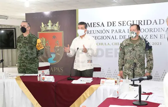En la reunión para la Coordinación Estatal y Regional de la Paz y Seguridad, desde el municipio de Tapachula, el gobernador Rutilio Escandón Cadenas informó que hay suficientes vacunas anticovid-19 y más centros de vacunación en la entidad, por lo que reiteró el llamado a las personas de 40 años en adelante a que acudan a recibir este biológico, a fin de proteger la salud y vida, tanto propia como de los seres queridos, ante esta enfermedad.