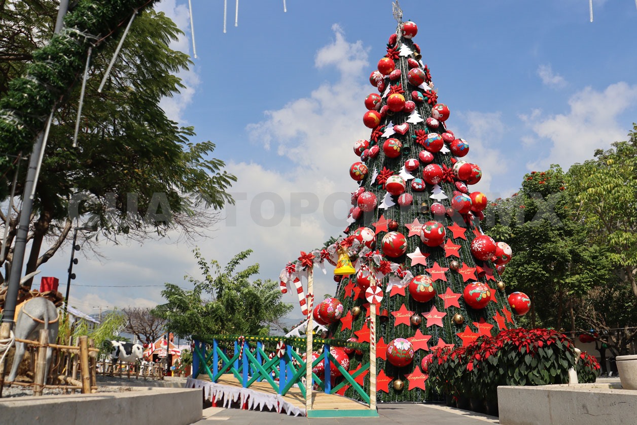 En los alrededores del parque 5 de Mayo también fue colocado un pesebre, el cual tiene en sus costados diversos animales como vacas, burros y hasta caballos.