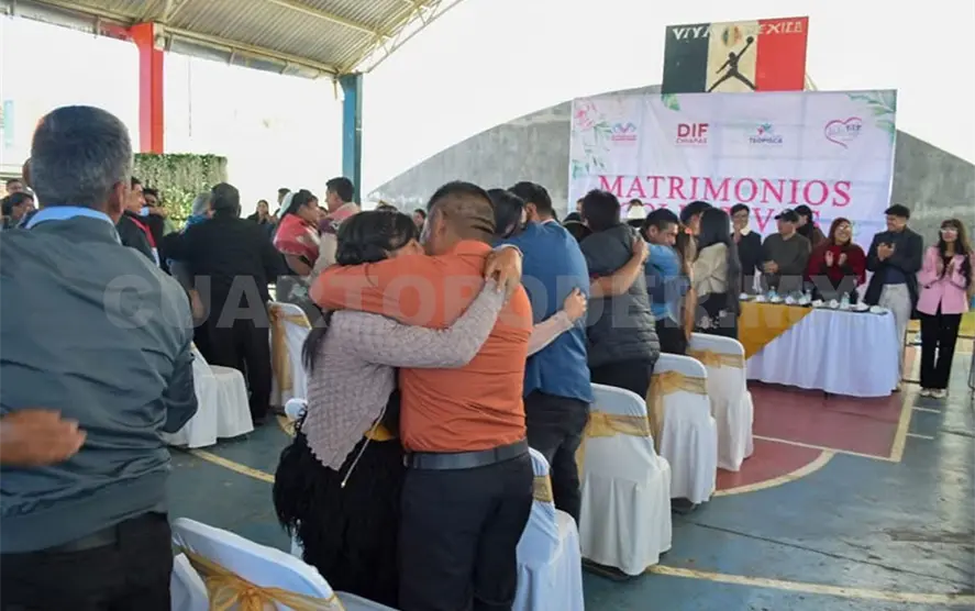 Con éxito se realizó la ceremonia de bodas comunitarias en el ejido Betania, municipio de Teopisca, organizada por el Ayuntamiento, el DIF y la Oficialía del Registro Civil.