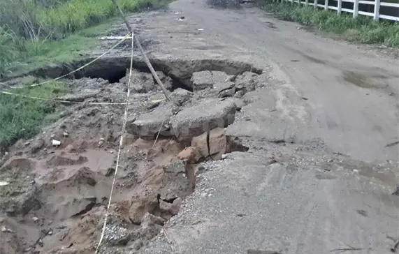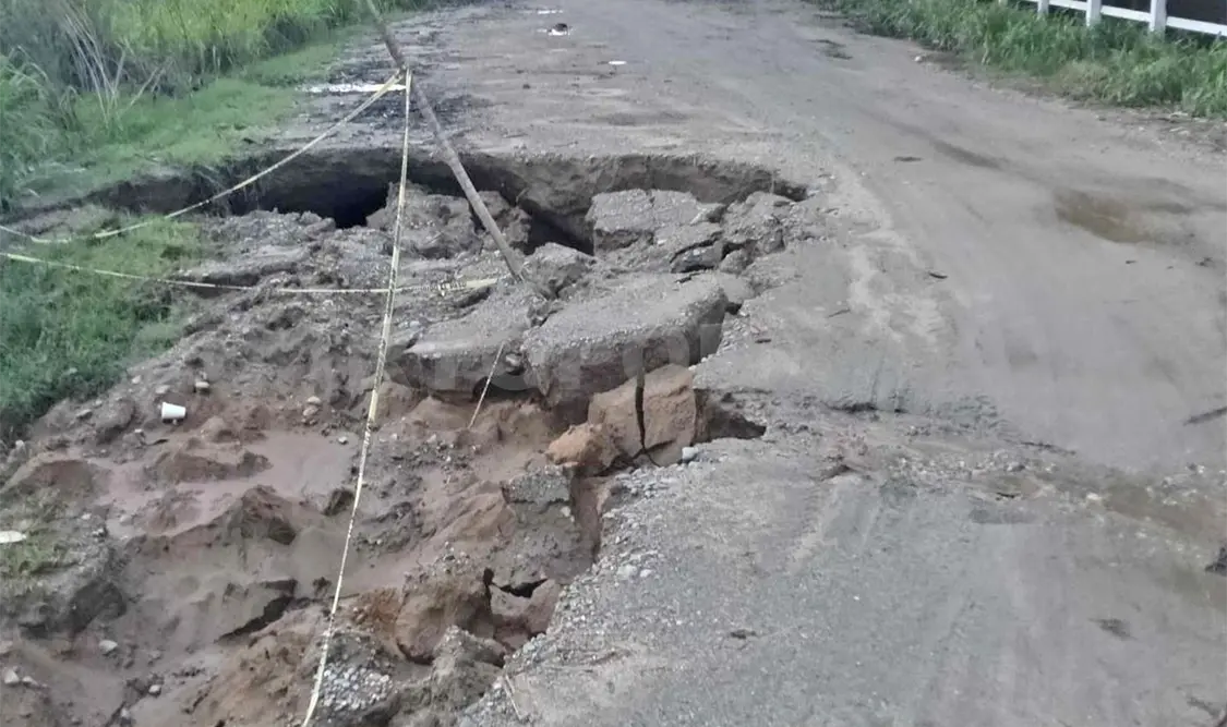 Detallan que actualmente el socavón se ha convertido en un riesgo y podría colapsar completamente, lo que dejaría a la vía inservible para pasar con vehículos pequeños y de carga.
