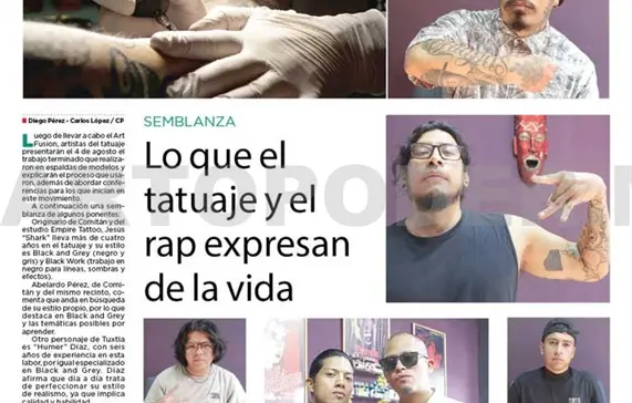 Originario de Comitán y del estudio Empire Tattoo, Jesús “Shark” lleva más de cuatro años en el tatuaje y su estilo es Black and Grey (negro y gris) y Black Work (trabajo en negro para líneas, sombras y efectos).