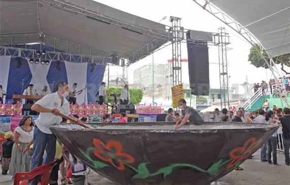 “El apoyo de las señoras y señores que vienen a preparar la masa a batir la masa y luego ya que esta batido depositarlo en la jícara más grande del mundo, es lo que nos permite continuar con esta tradición, que es la del llenado de la la jícara de pozol más grande del mundo”, explicó.