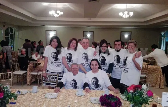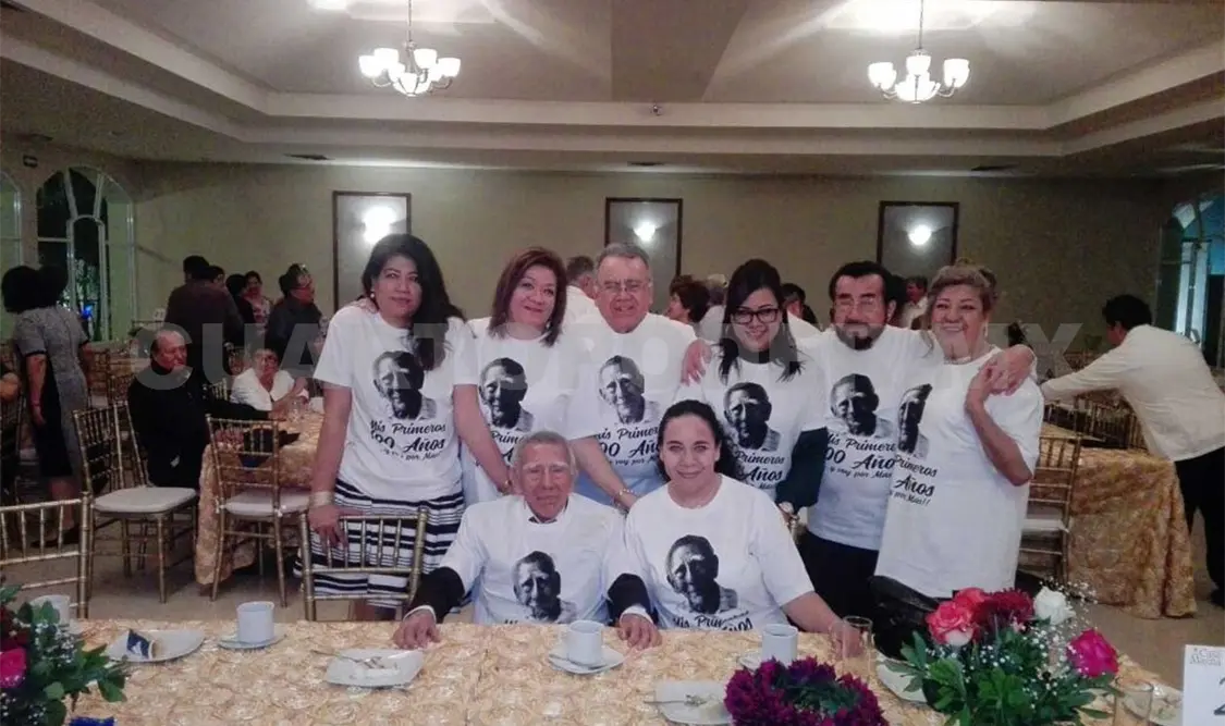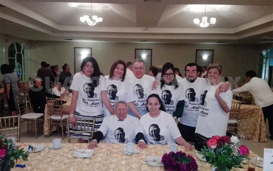 Rubén viste una playera blanca, alusiva a tan significativa fecha. Dice: “Mis primeros 100 años… y voy por más”.
