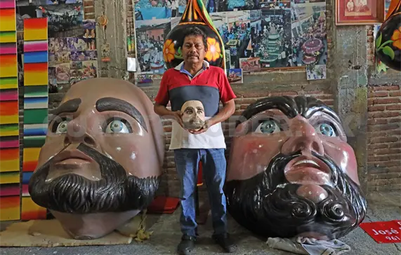 En su taller llamado Francisco Cameras, resguarda decenas de figuras de todos los tamaños, en su mayoría mayores a los dos metros de altura. Tiene desde animales salvajes, carruajes, reyes magos, máscaras de parachicos, accesorios como el chinchín o toles, “solo tienen que traer la idea y aquí lo diseñamos”.