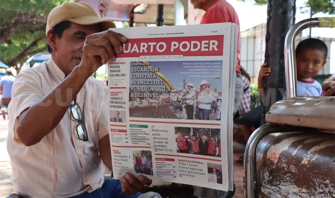 “Soy un lector de noticias, me gusta mucho estar enterado día a día de lo que pasa en mi estado y en el país. En Chiapas uno de los mejores periódicos locales, para mí, es Cuarto Poder. Lo leo todo porque trae las noticias más concisas y más apegadas a la realidad de los sucesos que pasan en el estado”, nos relata Néctar Moguel Espinoza, con periódico en mano, mientras toma de su taza en Café Avenida.