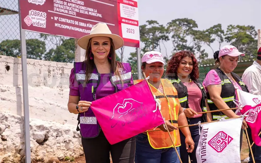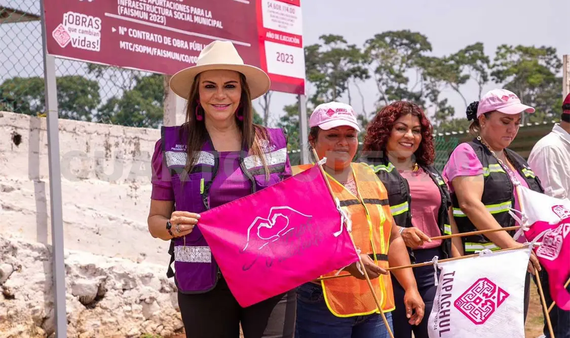 Al dar el banderazo de inicio de una nueva obra de pavimentación de calles con concreto hidráulico en la fracción Los Ángeles, en la zona media alta de Tapachula, la alcaldesa Rosa Irene Urbina Castañeda reiteró que los gobiernos de la Cuarta Transformación le cumplen al pueblo y le dan resultados.