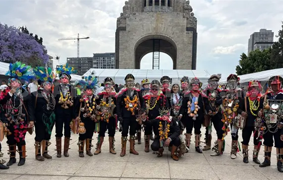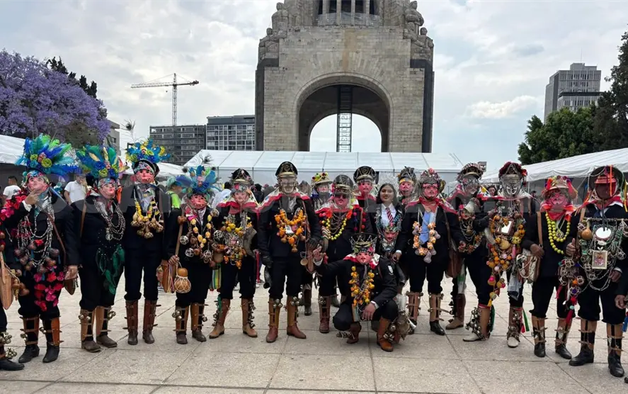 Los Tancoy fueron parte del gran desfile que recorrió la tarde de este domingo del Monumento a la Revolución al Zócalo, donde más de 60 comparsas llenaron las calles de música, color y tradición.