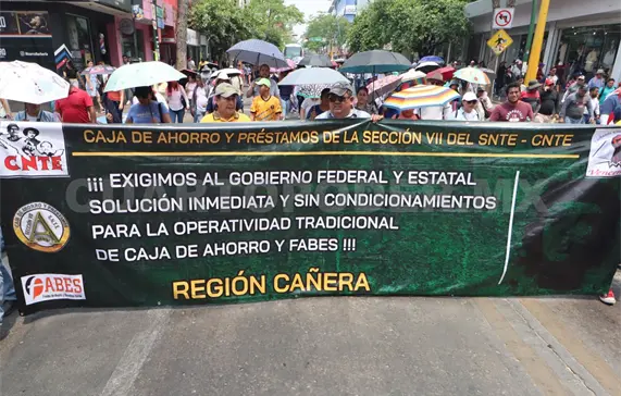 Ariel Malaín Vázquez Velázquez, coordinador regional de Caja de Ahorro de la región Cañera, encabezó las protestas con duras críticas al Gobierno Federal; denunció el fracaso de más de 30 mesas de diálogo con el gobierno anterior de Andrés Manuel López Obrador.