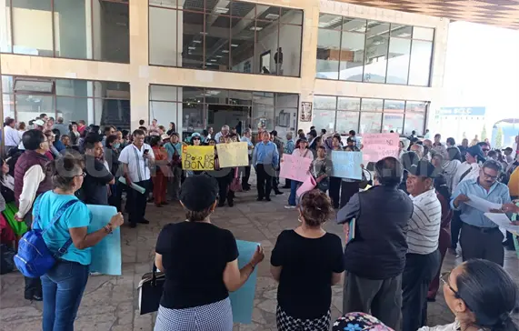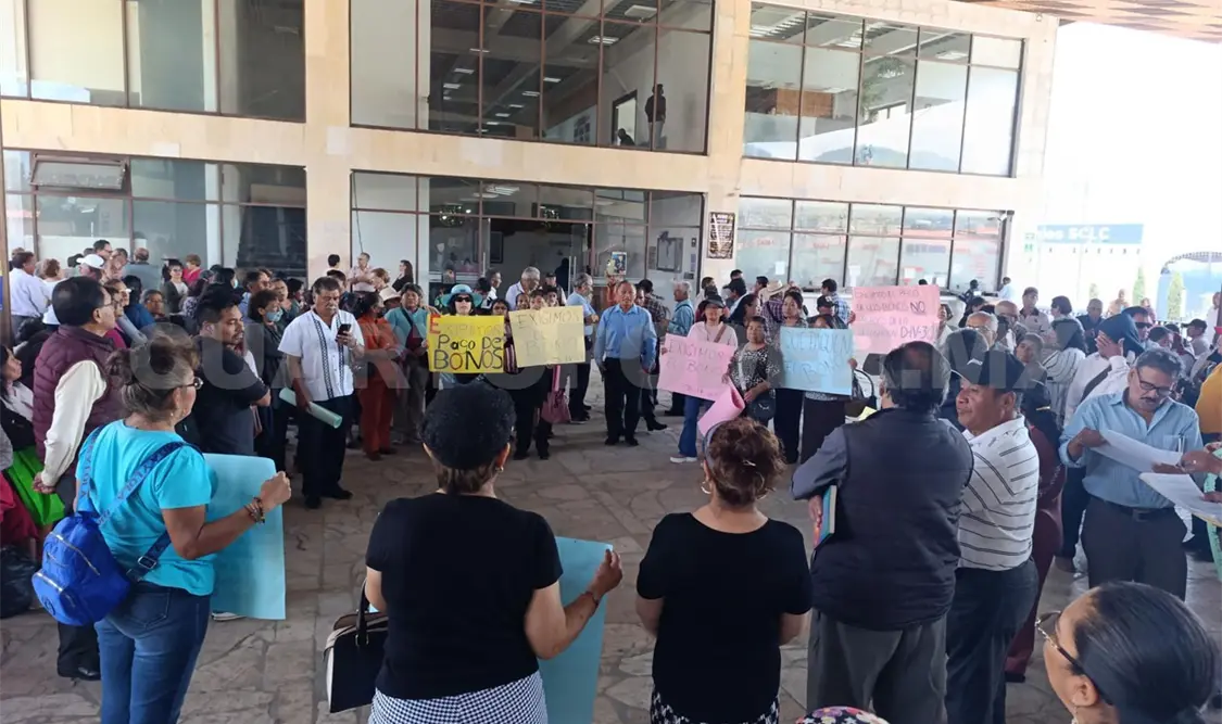 Cientos de maestros jubilados de la Sección VII del Sindicato Nacional de Trabajadores de la Educación (SNTE), se manifestaron este viernes frente al Ayuntamiento de San Cristóbal de Las Casas para exigir el pago de un bono correspondiente de 2018 a la fecha.