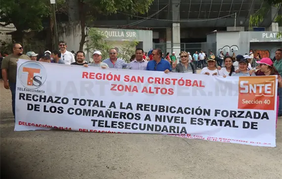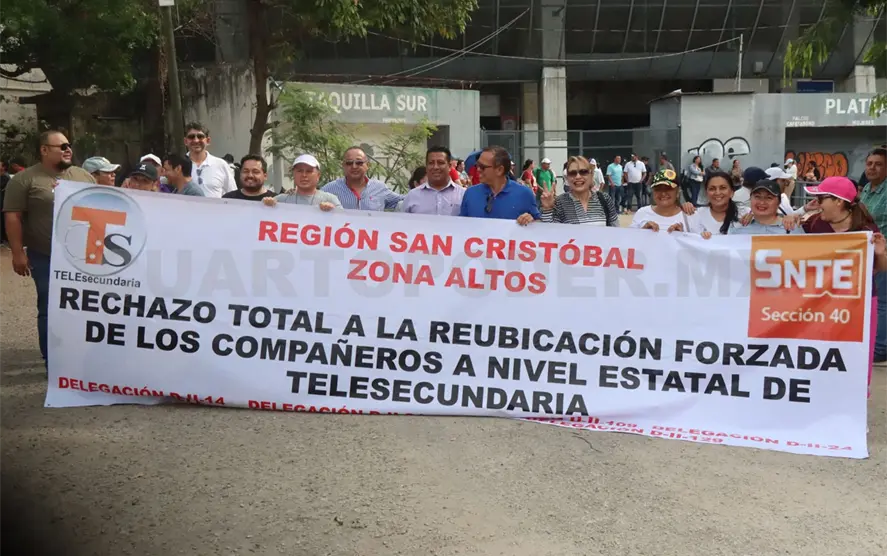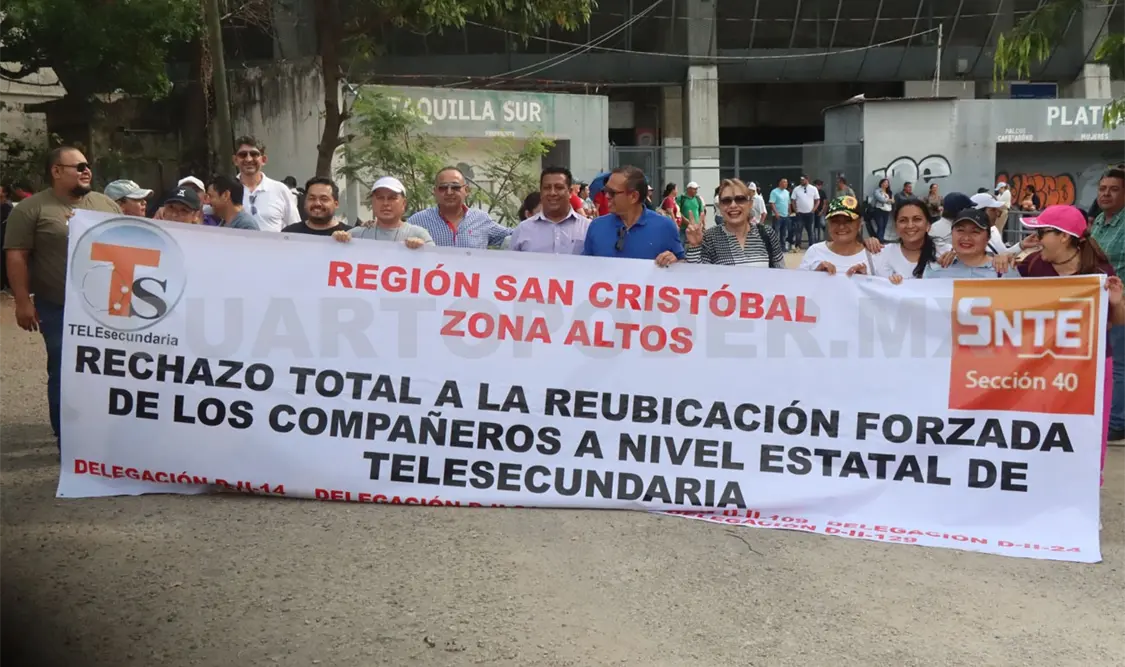 Maestros de la zona Altos se manifestaron en contra de la reubicación de lugares de trabajo que ha buscado hacer la Secretaría de Educación (SE) de forma unilateral, debido a que violenta sus derechos laborales y, sobre todo, afecta a las comunidades estudiantiles de las escuelas.