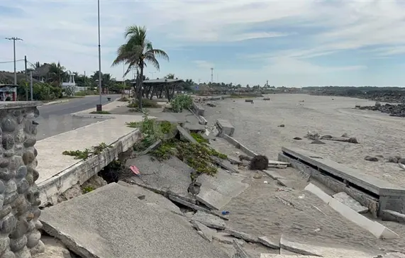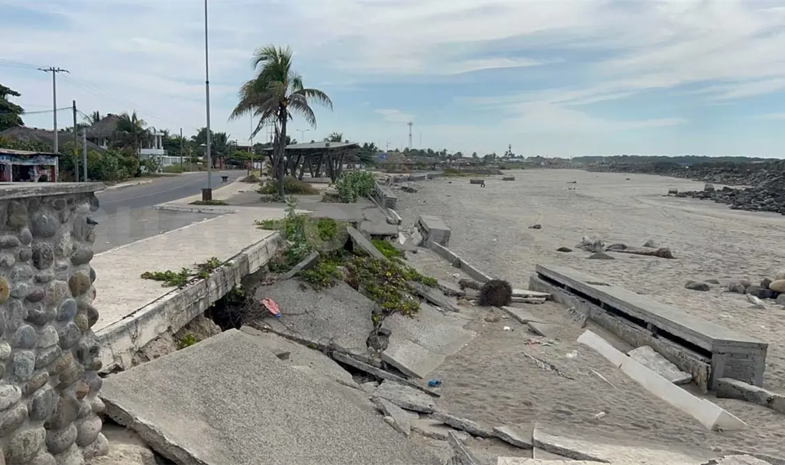 En el lugar se puede observar por lo menos un kilómetro de este corredor con segmentos de su estructura colapsada; varios de los pedazos de concreto están enterrados en la arena y toda la estructura principal se ha convertido en un riesgo para los lugareños y turistas.