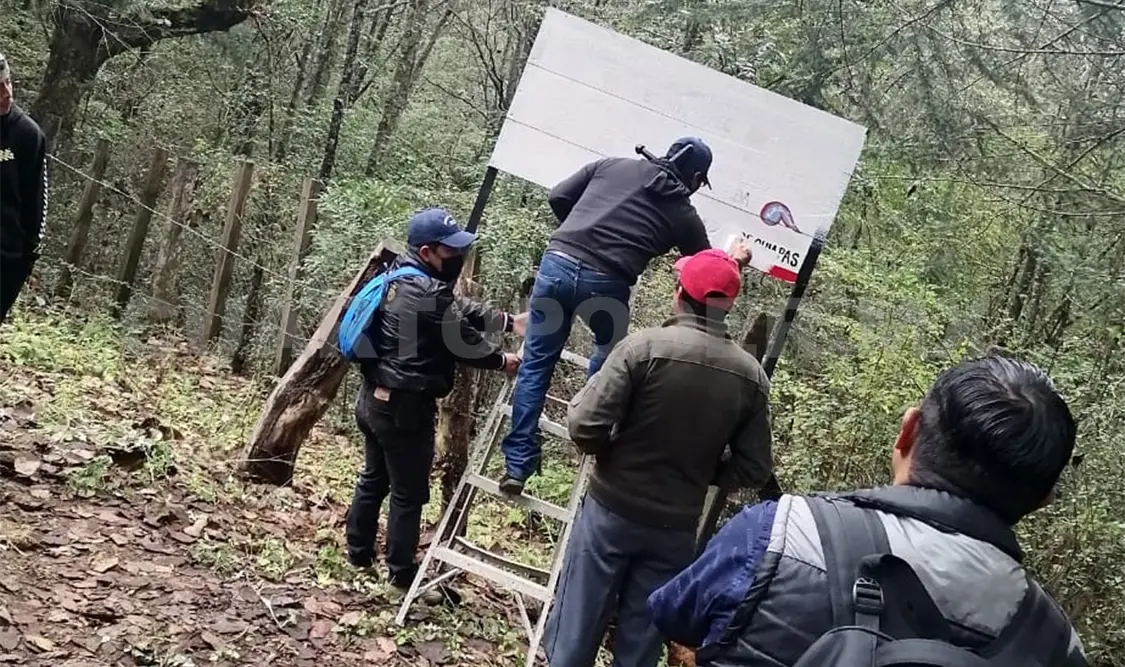 Integrantes de la organización “Guardianes de la reserva Huitepec Alcanfores” y de la sociedad civil se reunieron la mañana del pasado domingo para “retirar los letreros que presuntos zapatistas colocaron en la reserva”, invadiendo sus tierras.