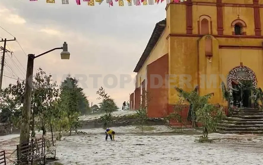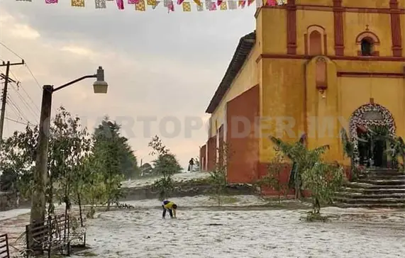El granizo quedó acumulado en los techos, carreteras y diversos espacios públicos, además de un considerable descenso en la temperatura.