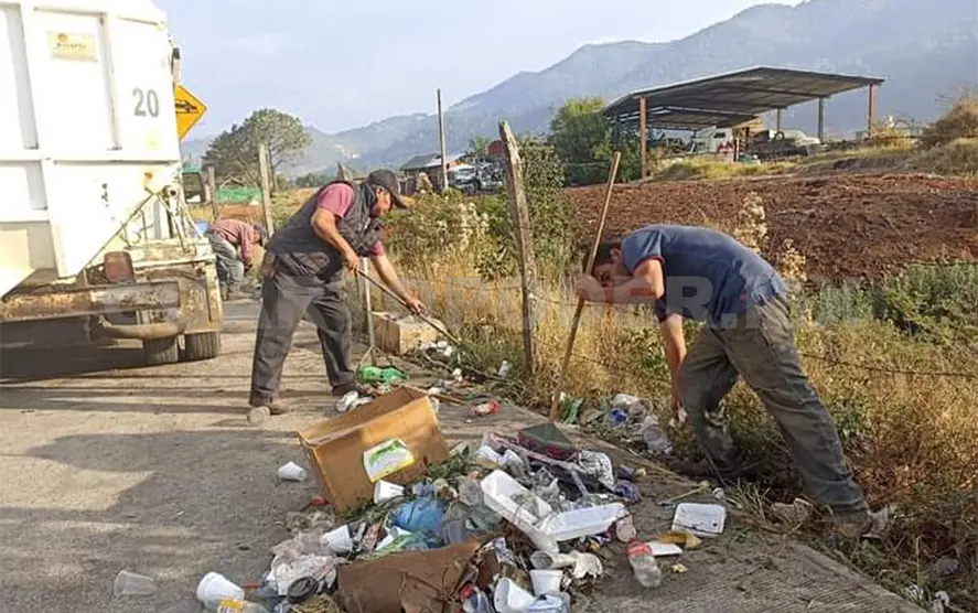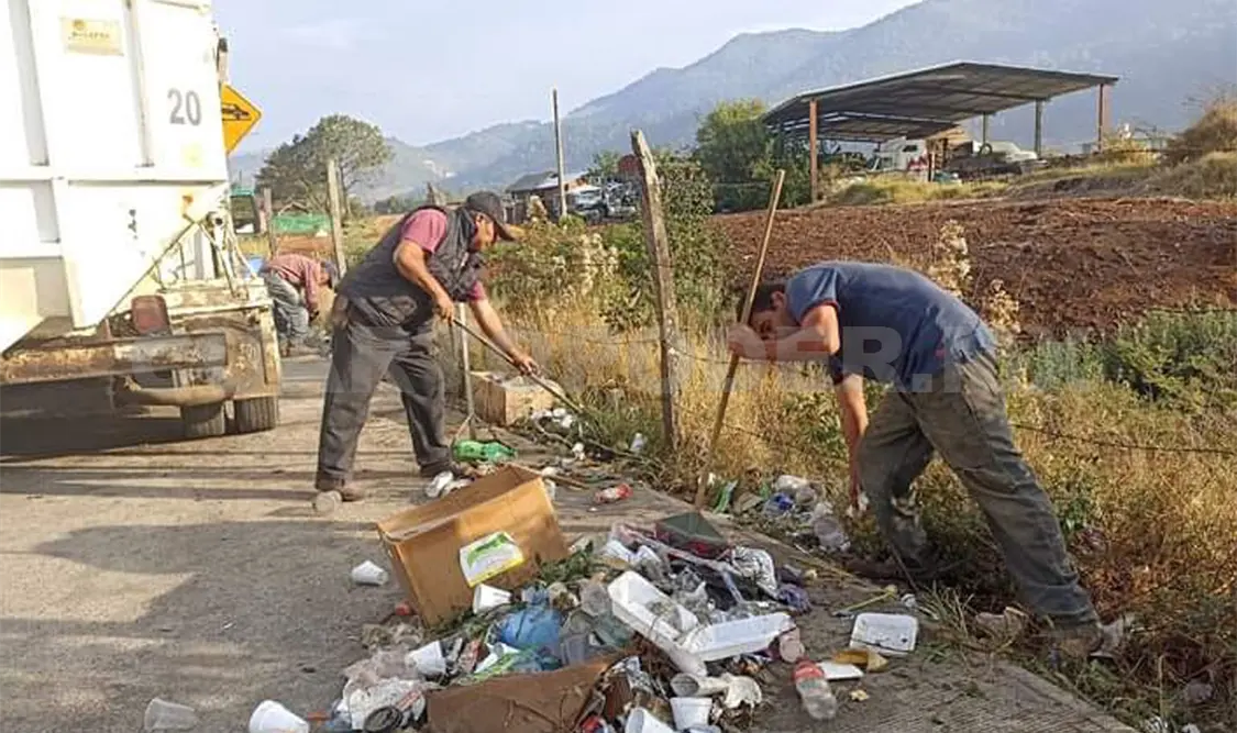 Personal de limpieza municipal realizó el levantamiento de la basura que los manifestantes dejaron sobre la carretera internacional Teopisca-San Cristóbal, en donde un grupo de personas mantuvo el bloqueo a la vías de comunicación, a la altura de la gasolinera ubicada en la entrada a Teopisca.
