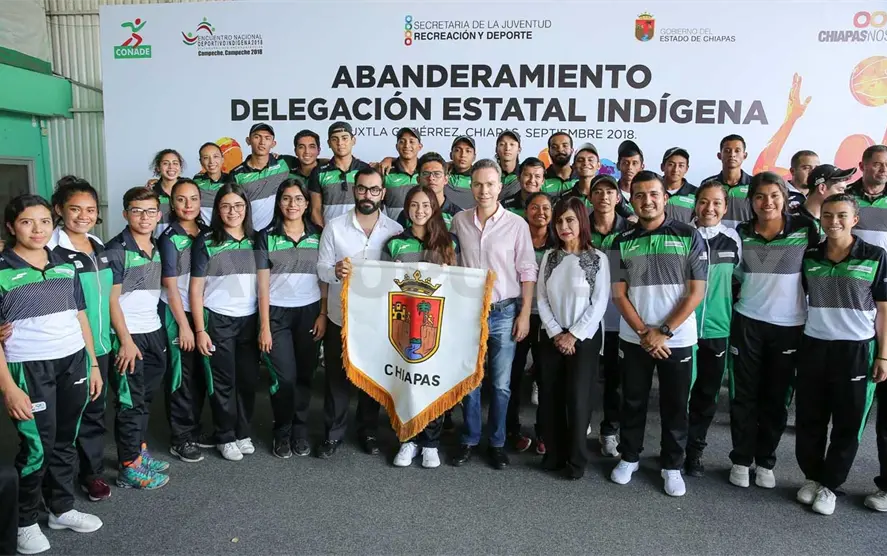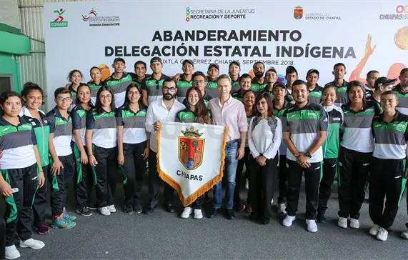 El gobernador Manuel Velasco Coello abanderó a la Delegación Chiapas que acudirá al Encuentro Nacional Deportivo Indígena 2018, a celebrarse en el estado de Campeche.