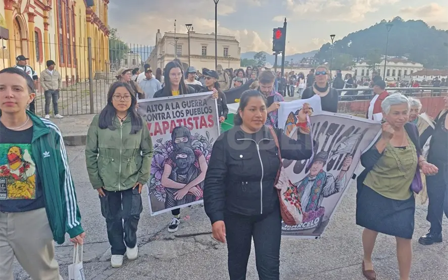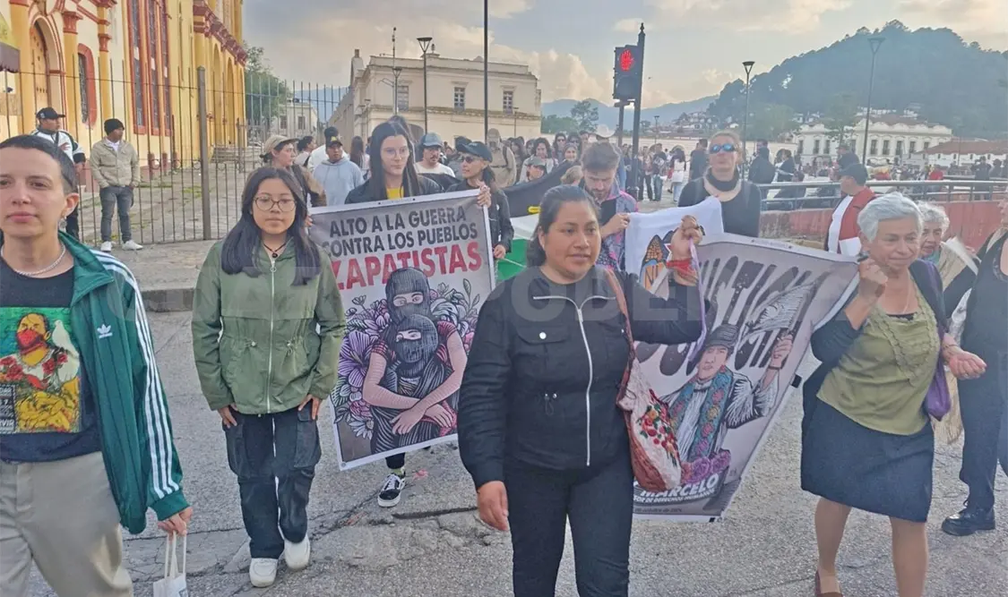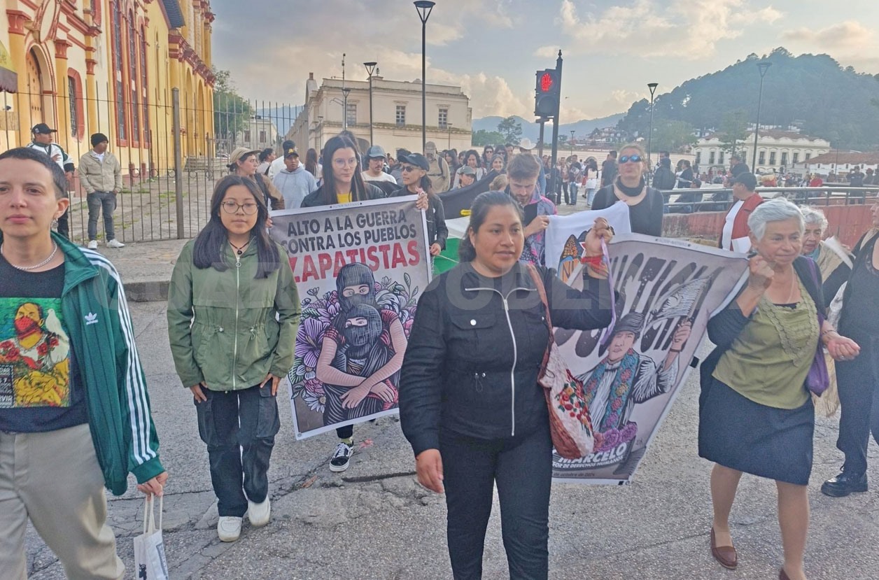 Más de cien personas marcharon la tarde de este sábado en San Cristóbal de Las Casas en defensa del Común y para exigir un alto a las “agresiones” en contra de las bases de apoyo del Ejército Zapatista de Liberación Nacional (EZLN).