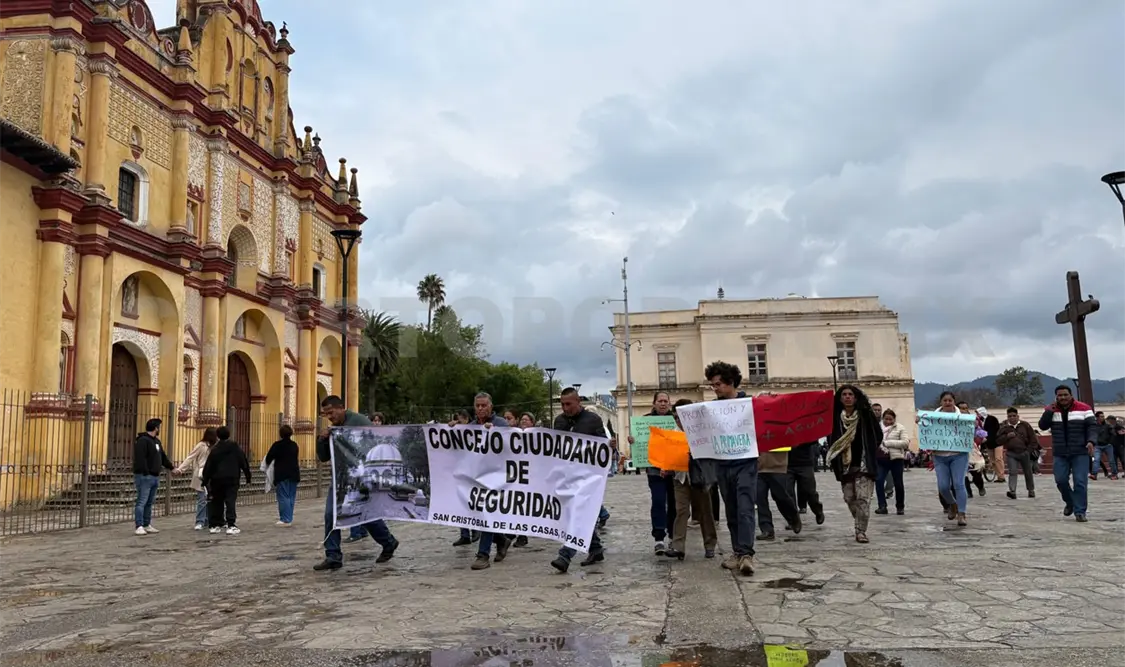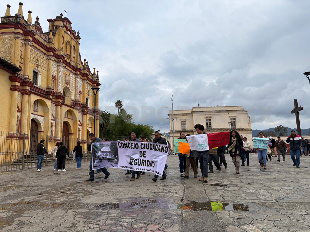 Un contingente de alrededor de 50 personas, conformado por representantes de distintos barrios de San Cristóbal que padecen la escasez de agua potable, así como el Consejo ciudadano de seguridad, marcharon la tarde este jueves desde la Catedral hasta el teatro Daniel Zebadúa, donde se desarrollaba el foro “Derecho al agua, justicia ambiental y construcción de paz en San Cristóbal”.