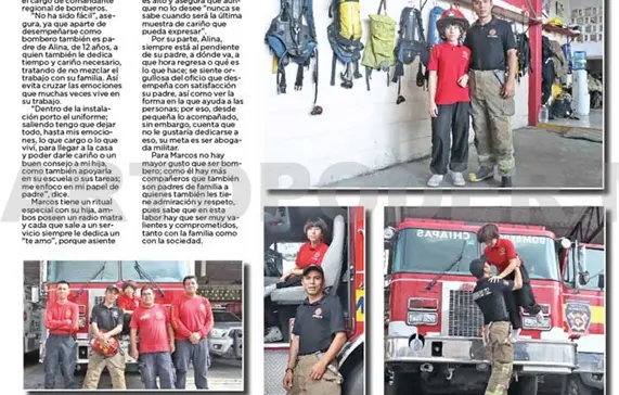 Para Marcos no hay mayor gusto que ser bombero; como él hay más compañeros que también son padres de familia a quienes también les tiene admiración y respeto, pues sabe que en esta labor hay que ser muy valientes y comprometidos, tanto con la familia como con la sociedad.